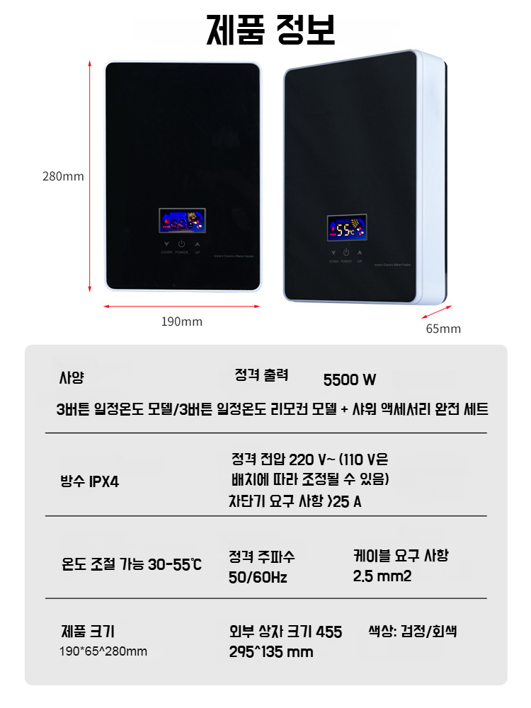 가정용 소형 온수기 벽걸이 샤워 즉열식 전기 온수기 설치 면제 속열 항온 목욕 온수기